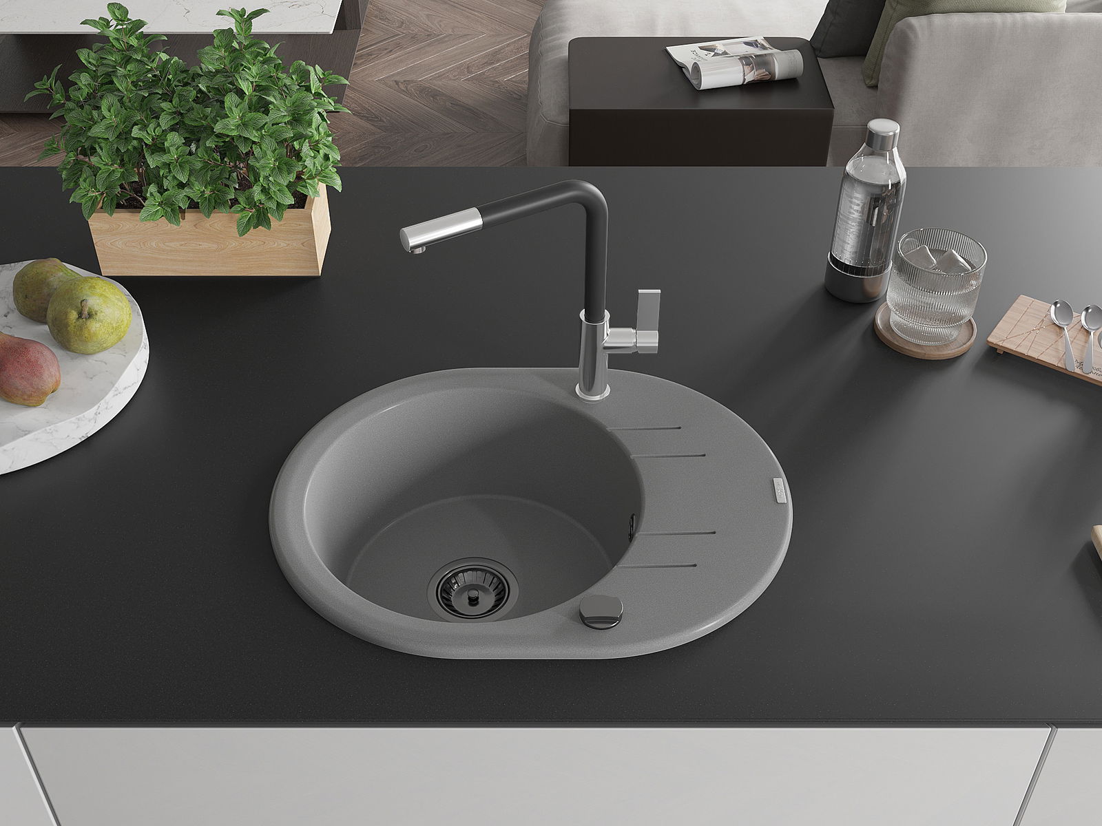 Zlewozmywak został wykonany z wysokiej jakości granitu. Stanowi eleganckie, a przede wszystkim praktyczne uzupełnienie każdej kuchni, niezależnie od jej stylu. Wysoka jakość oraz trwałość granitu zapewniają wieloletnie użytkowanie.