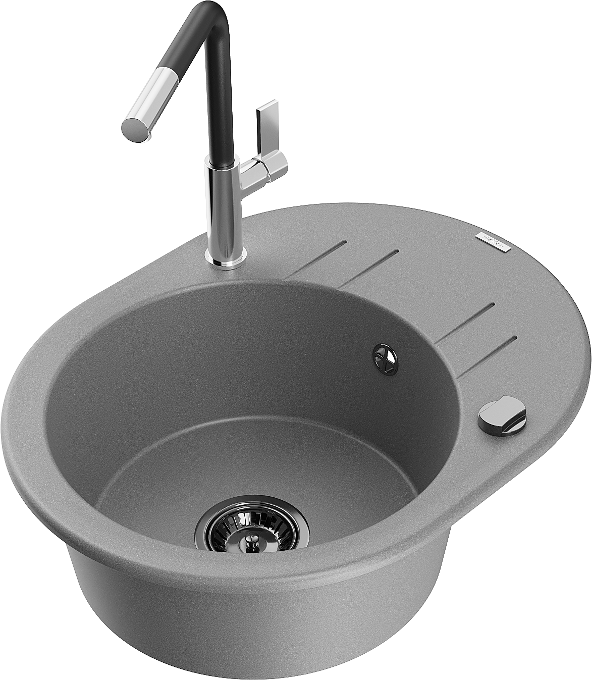 Mexen Kevin zlewozmywak granitowy 1-komorowy z ociekaczem i baterią kuchenną Flora, szary - 6517-71-670401-07-B