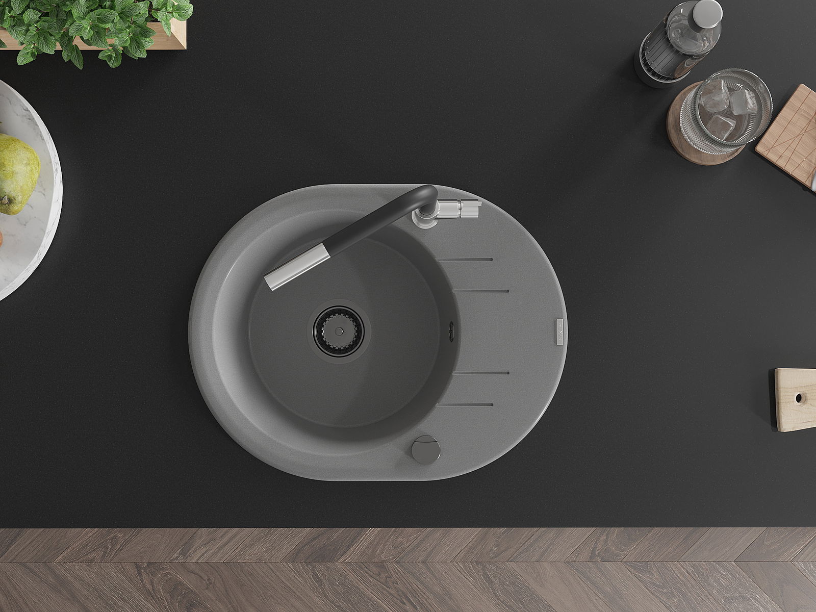 Dzięki zastosowaniu uniwersalnego systemu mocowania, zlew jest odwracalny, a ociekacz może zostać zamontowany na blacie po lewej lub prawej stronie. W ten sposób możesz z łatwością dopasować stronę do swoich potrzeb i warunków.