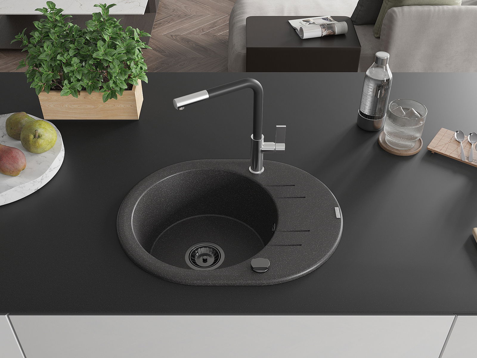 Zlewozmywak został wykonany z wysokiej jakości granitu. Stanowi eleganckie, a przede wszystkim praktyczne uzupełnienie każdej kuchni, niezależnie od jej stylu. Wysoka jakość oraz trwałość granitu zapewniają wieloletnie użytkowanie.