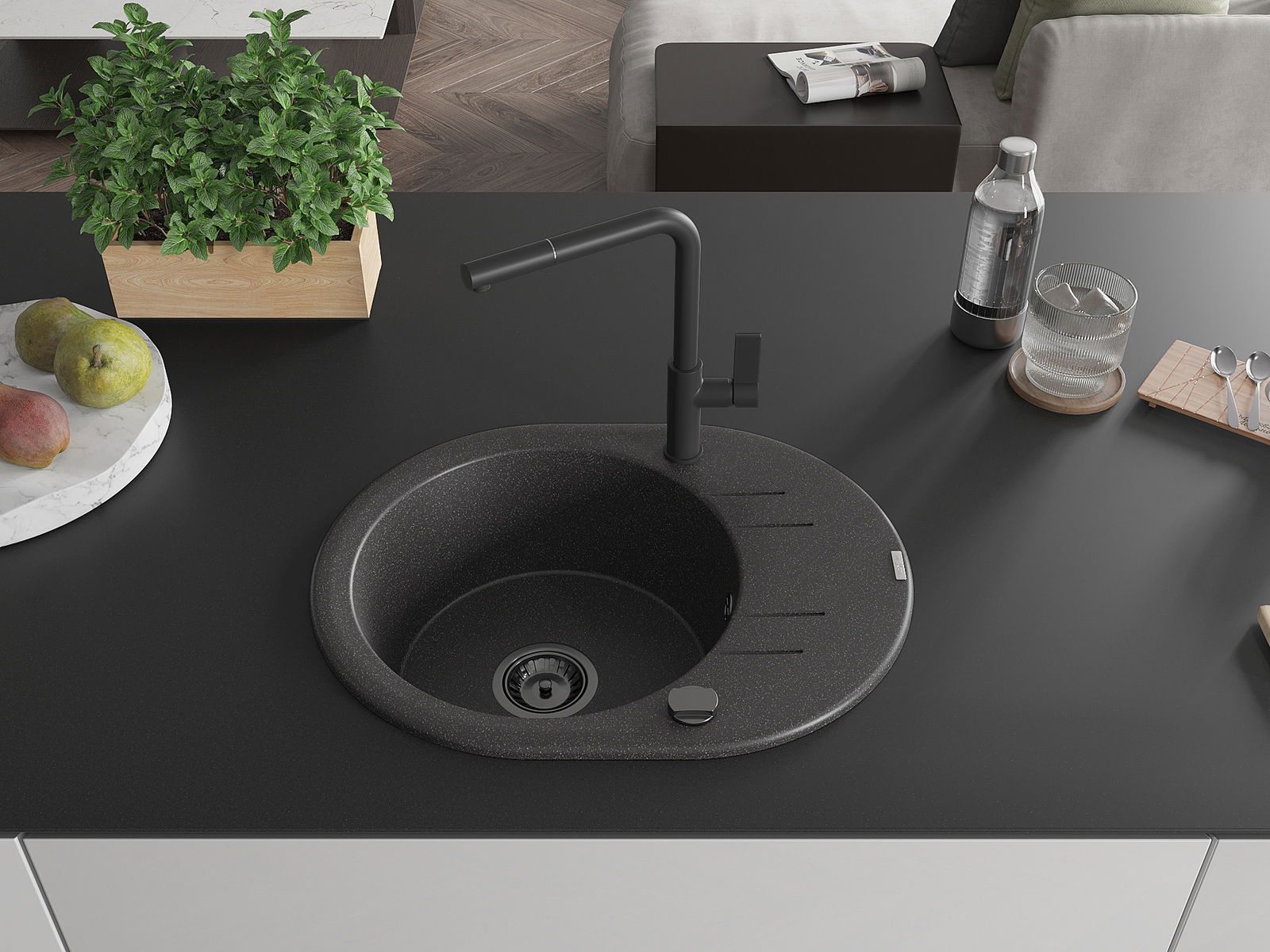 Zlewozmywak został wykonany z wysokiej jakości granitu. Stanowi eleganckie, a przede wszystkim praktyczne uzupełnienie każdej kuchni, niezależnie od jej stylu. Wysoka jakość oraz trwałość granitu zapewniają wieloletnie użytkowanie.