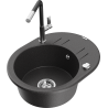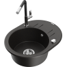 Mexen Kevin zlewozmywak granitowy 1-komorowy z ociekaczem i baterią kuchenną Flora, czarny - 6517-77-670401-07
