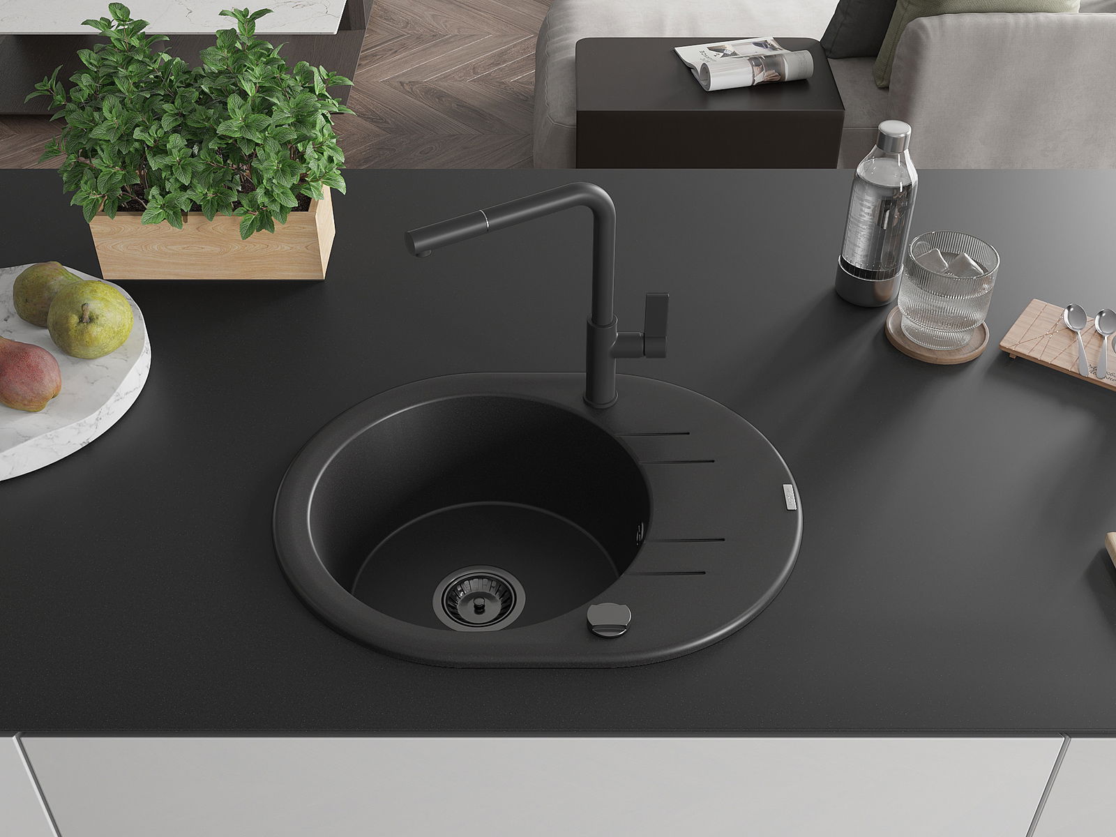 Zlewozmywak został wykonany z wysokiej jakości granitu. Stanowi eleganckie, a przede wszystkim praktyczne uzupełnienie każdej kuchni, niezależnie od jej stylu. Wysoka jakość oraz trwałość granitu zapewniają wieloletnie użytkowanie.