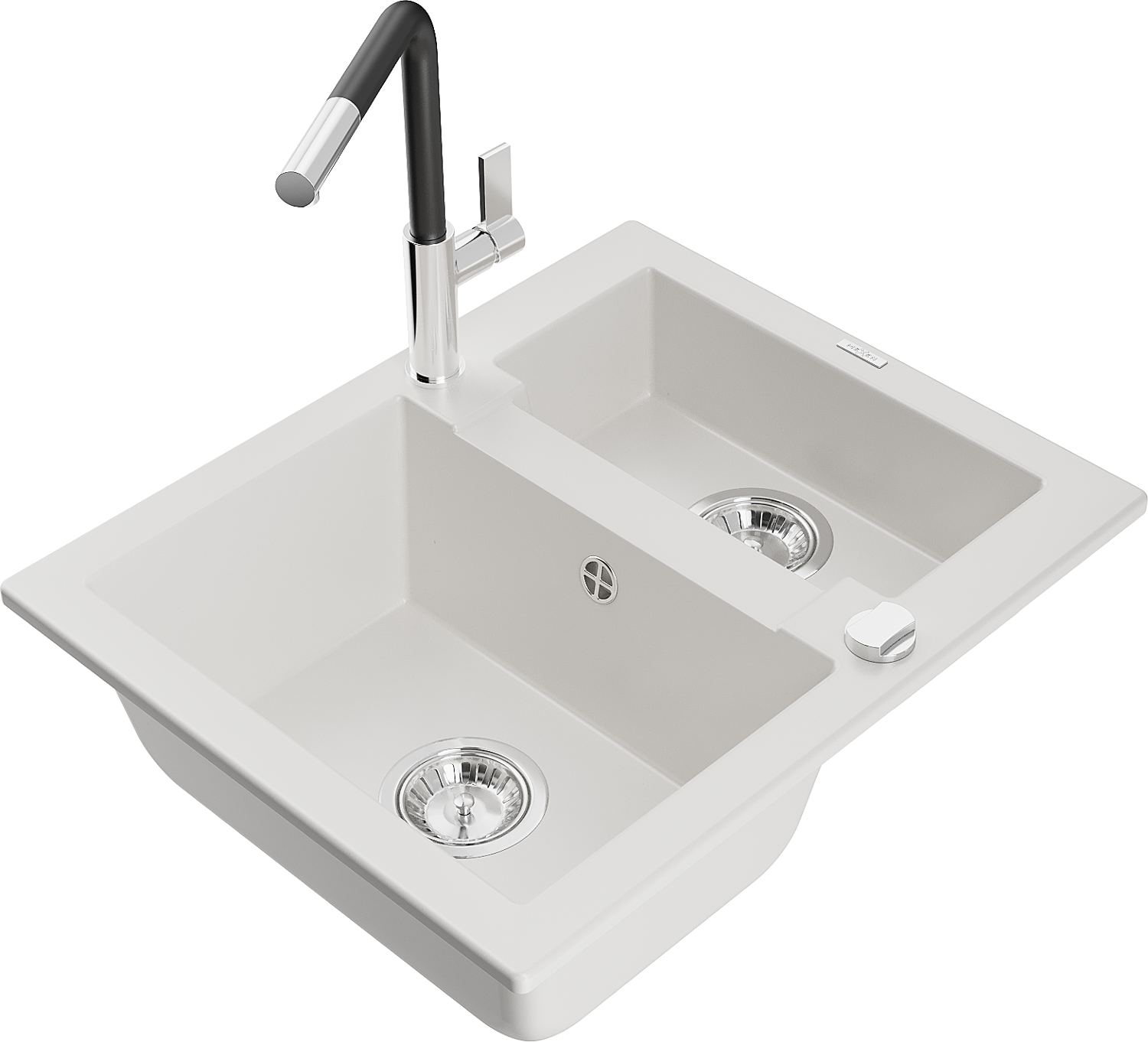 Mexen Carlos zlewozmywak granitowy 1,5-komorowy z baterią kuchenną Flora, biały - 6518-20-670401-07
