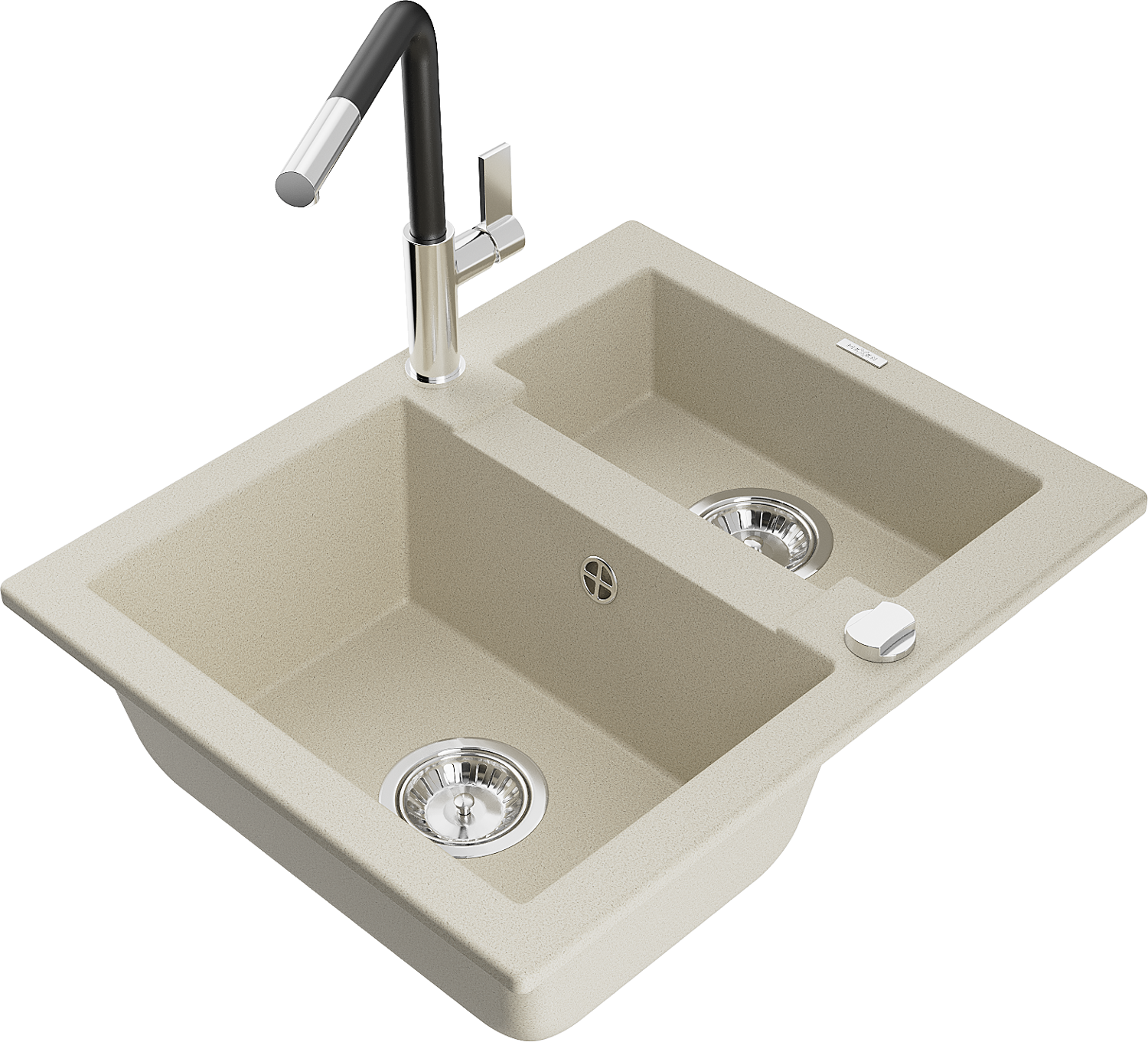 Mexen Carlos zlewozmywak granitowy 1,5-komorowy z baterią kuchenną Flora, beżowy - 6518-69-670401-07
