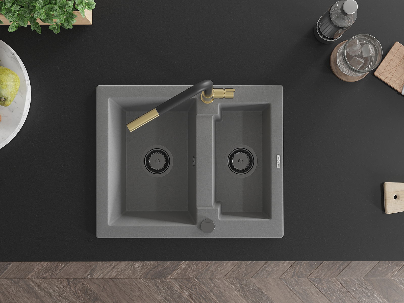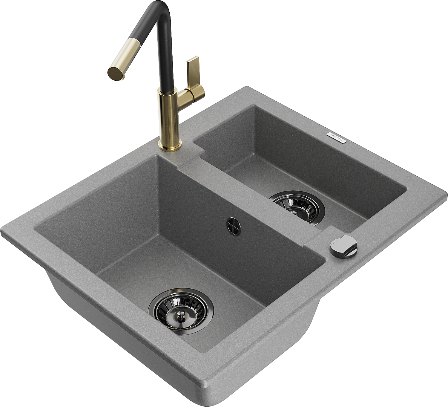 Mexen Carlos zlewozmywak granitowy 1,5-komorowy z baterią kuchenną Flora, szary - 6518-71-670401-57-B