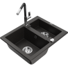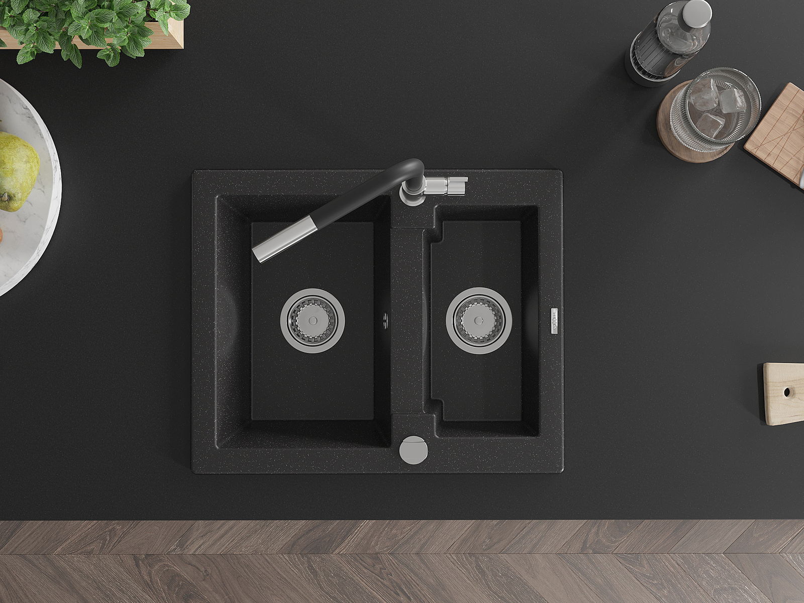 Mexen Carlos zlewozmywak granitowy 1,5-komorowy z baterią kuchenną Flora, czarny/srebrny metalik - 6518-73-670401-07