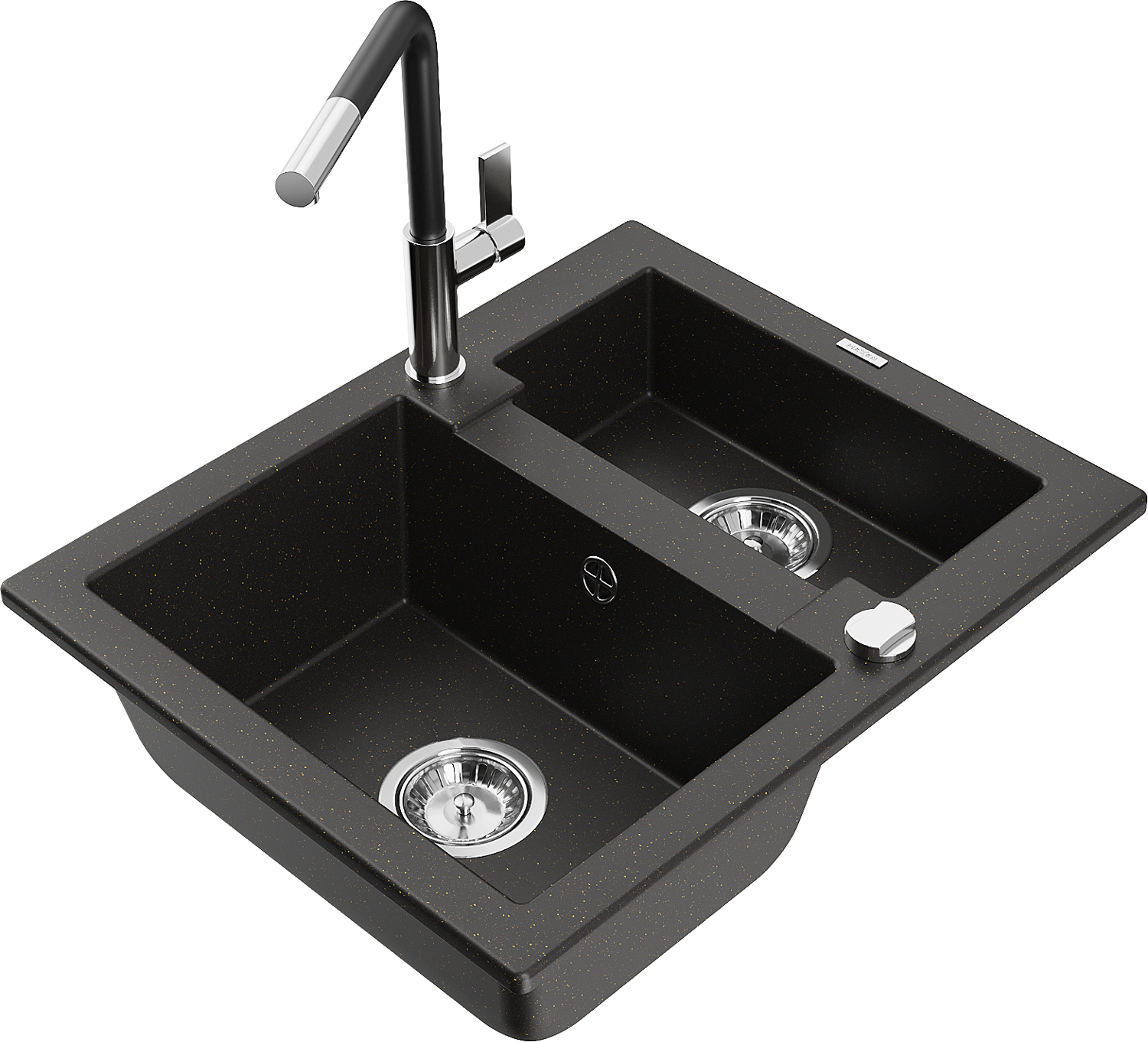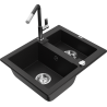 Mexen Carlos zlewozmywak granitowy 1,5-komorowy z baterią kuchenną Flora, czarny/złoty metalik - 6518-75-670401-07