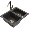 Mexen Carlos zlewozmywak granitowy 1,5-komorowy z baterią kuchenną Flora, czarny nakrapiany - 6518-76-670401-57-G