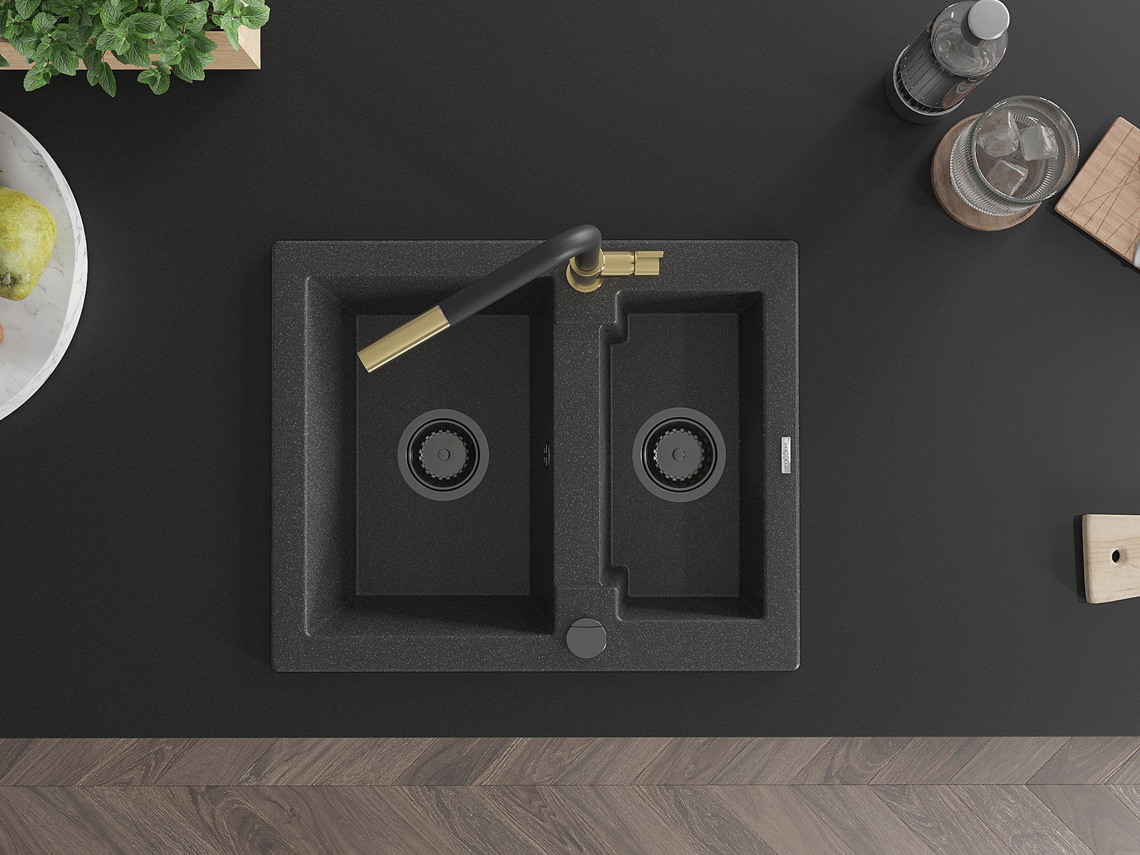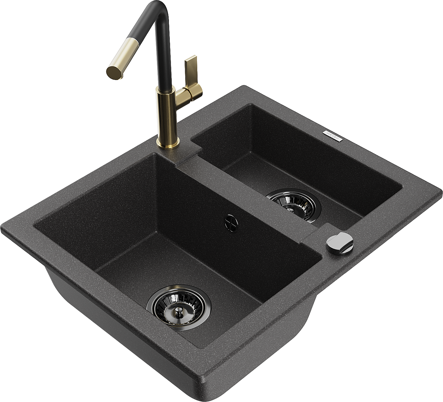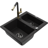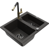 Mexen Carlos zlewozmywak granitowy 1,5-komorowy z baterią kuchenną Flora, czarny nakrapiany - 6518-76-670401-57-B