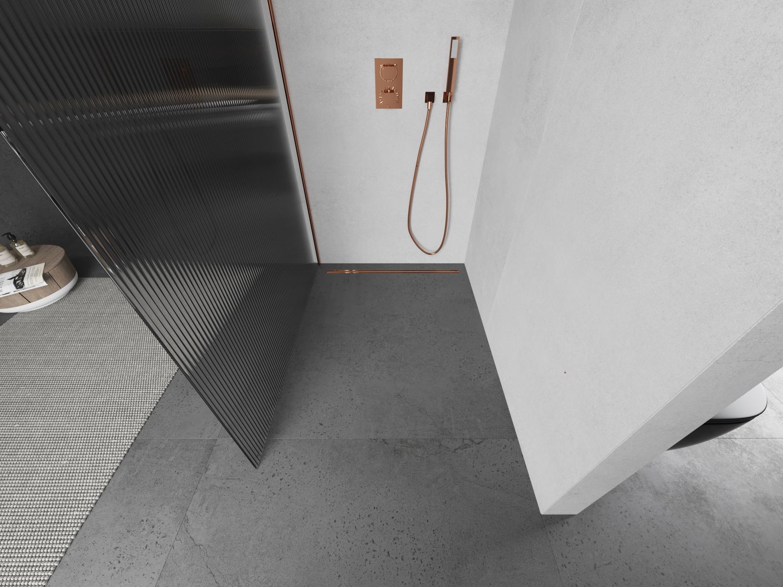 Mexen Kioto ścianka prysznicowa Walk-in 100 x 200 cm, prążki 8 mm, różowe złoto - 800-100-101-60-09