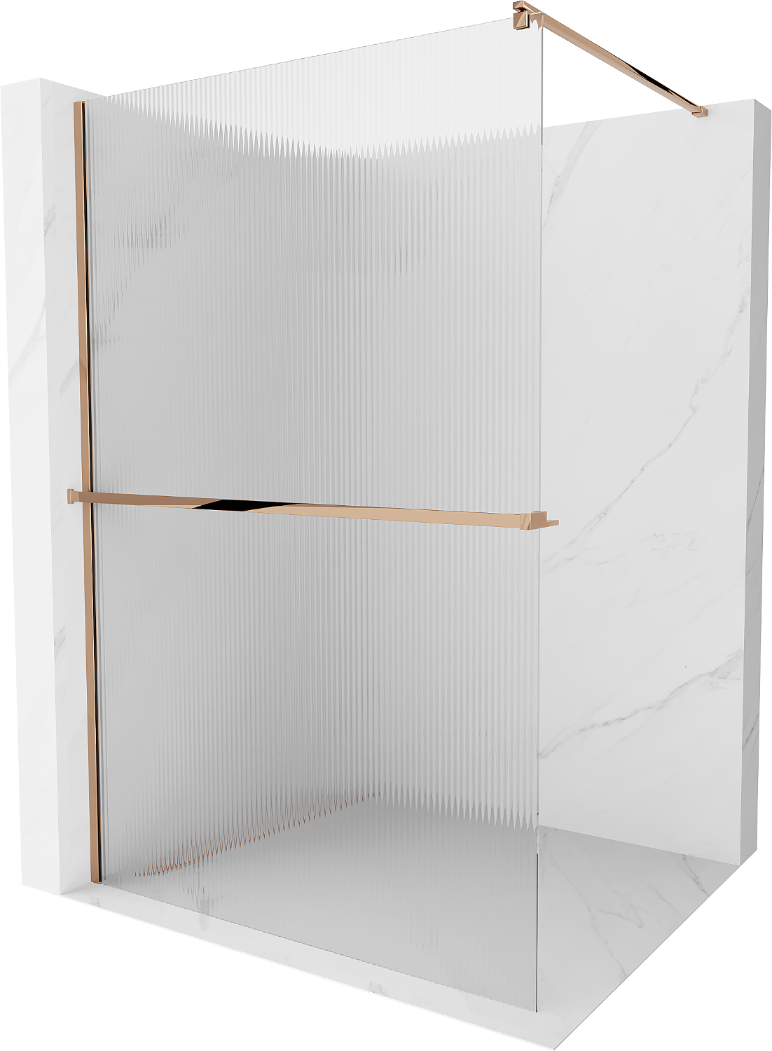 Mexen Kioto+ ścianka prysznicowa z półką Walk-in 110 x 200 cm, prążki, różowe złoto - 800-110-121-60-09