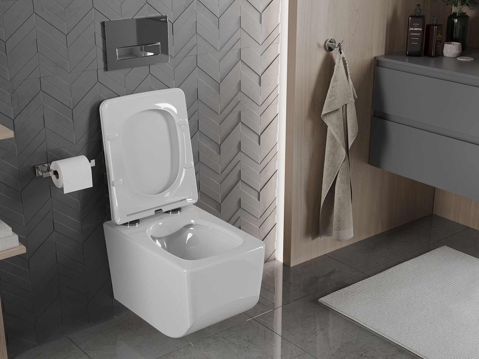 Cienka deska o wyjątkowo ergonomicznym kształcie i niezwykle smukłym wyglądzie. Konstrukcja idealnie dopasowuje się do nowoczesnego wnętrza łazienki, dając wrażenie lekkości. Doskonały wybór do minimalistycznych aranżacji.