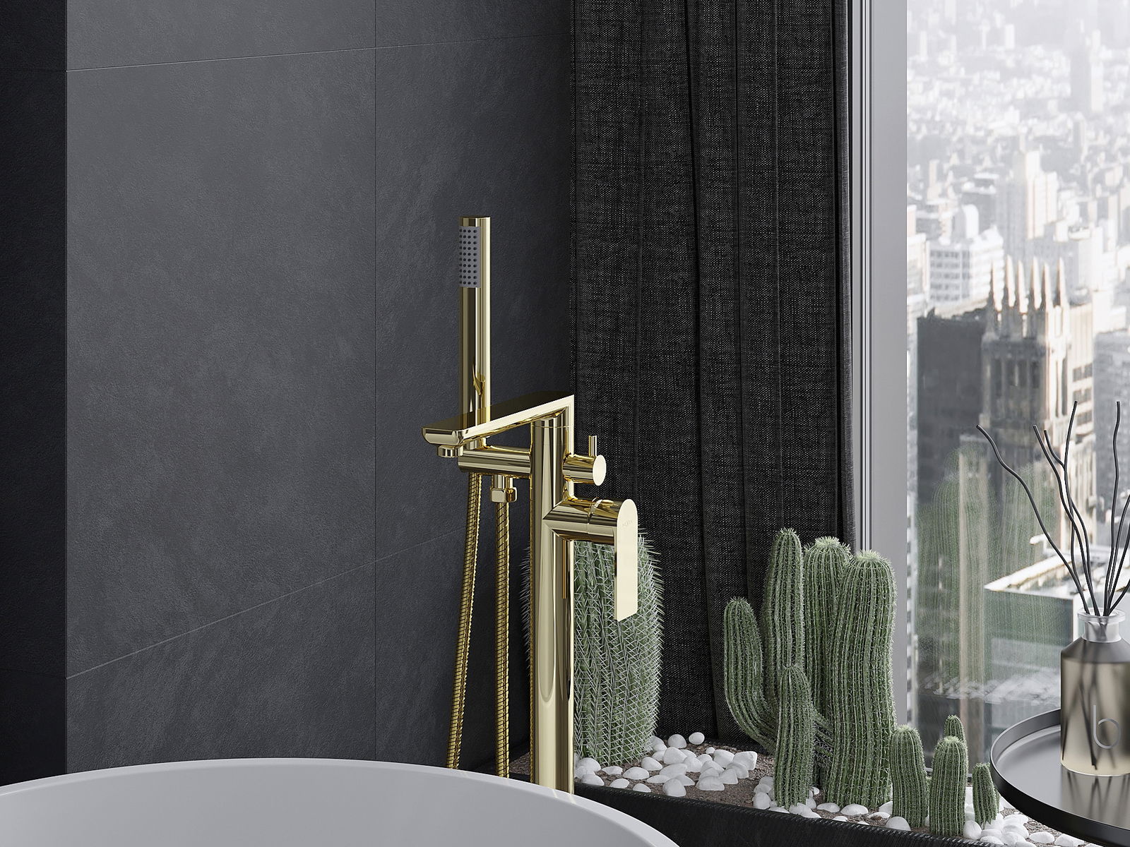Mexen Leda wolnostojąca bateria wannowa, złota - 75633-50