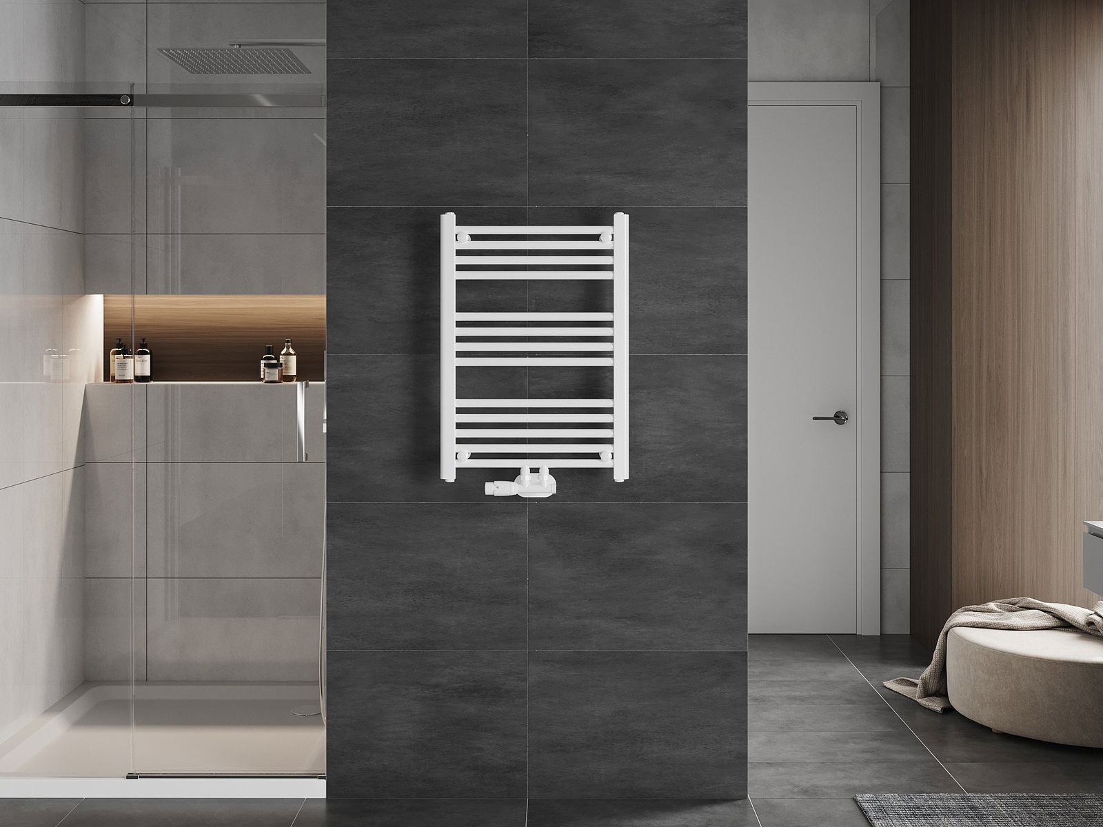 W komplecie: zawieszenia, zestaw montażowy, korki zaślepiające oraz odpowietrznik