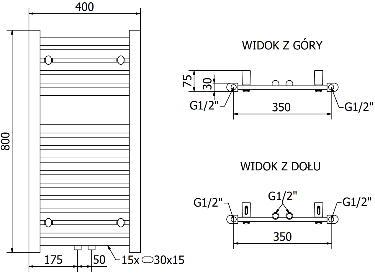 - 4xG ½″ od góry oraz dołu z prawej lub lewej strony