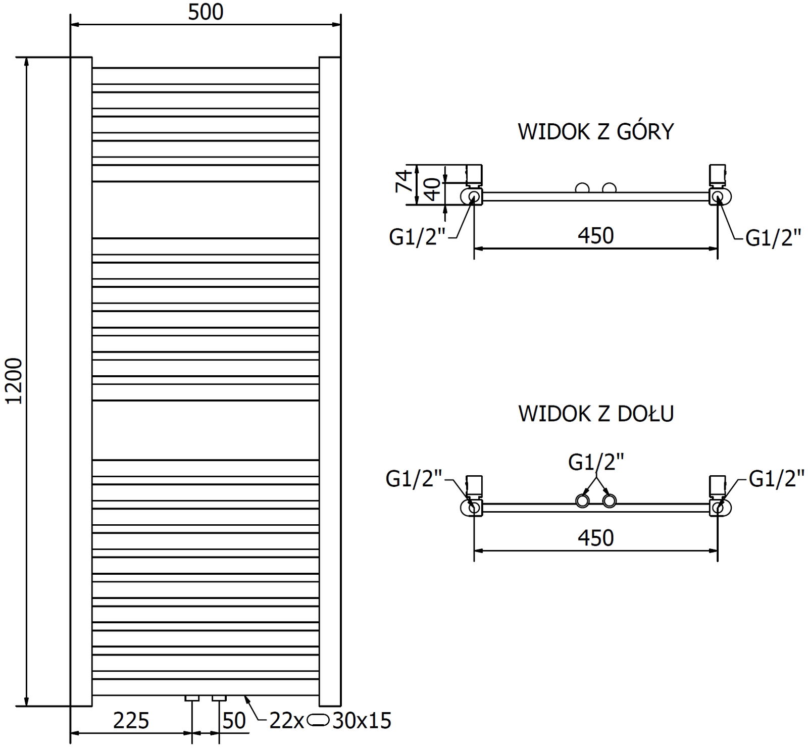 - 4xG ½″ od góry oraz dołu z prawej lub lewej strony