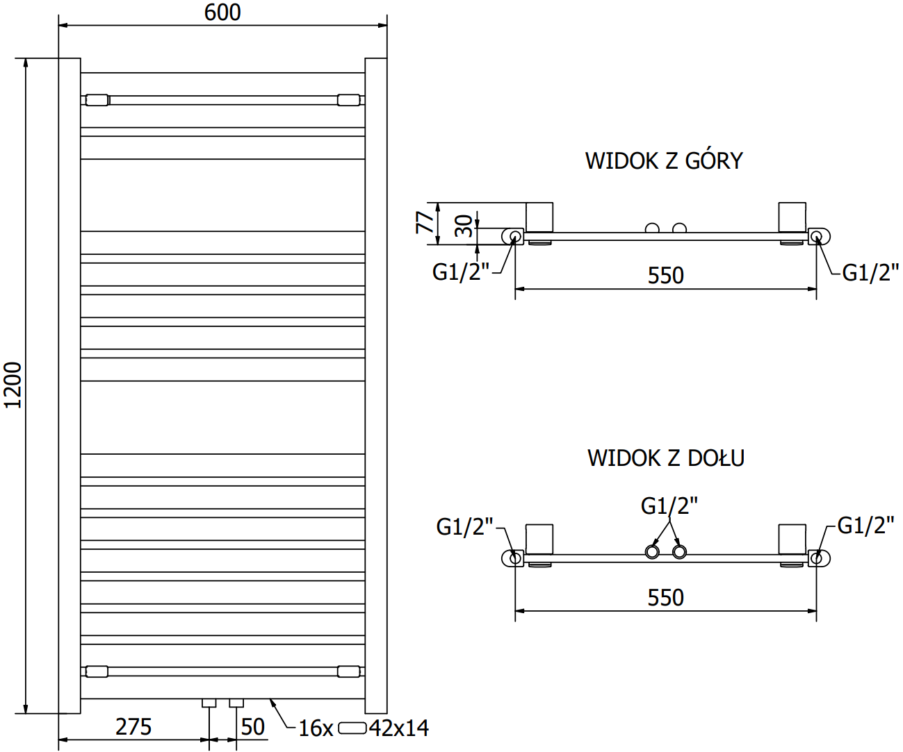 - 4xG ½″ od góry oraz dołu z prawej lub lewej strony