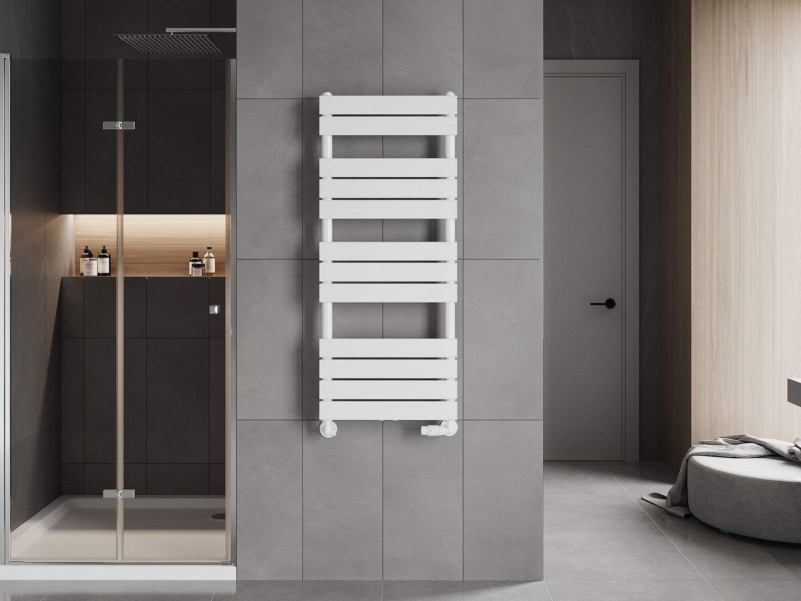 W komplecie: zawieszenia, zestaw montażowy, korki zaślepiające oraz odpowietrznik