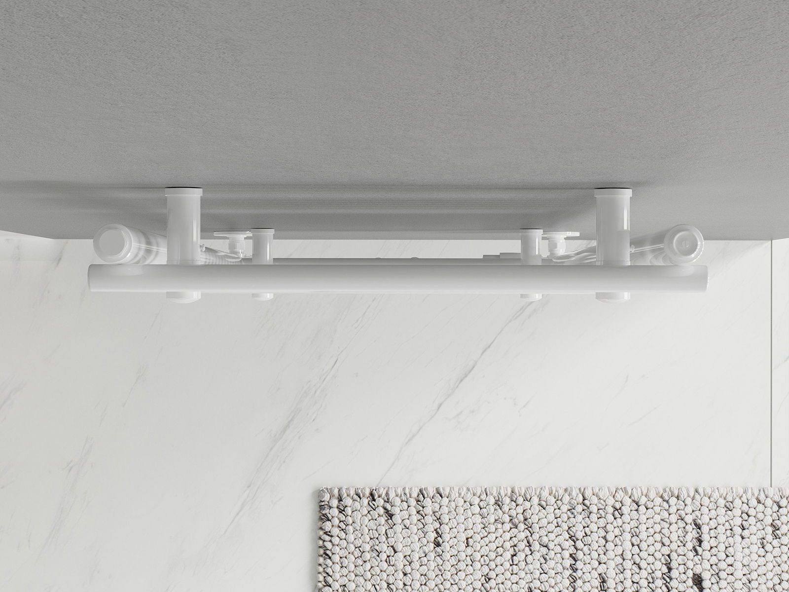 W komplecie: zawieszenia, zestaw montażowy, korki zaślepiające oraz odpowietrznik