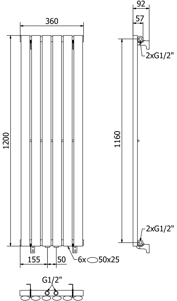 - 4xG ½″ od góry oraz dołu z prawej lub lewej strony