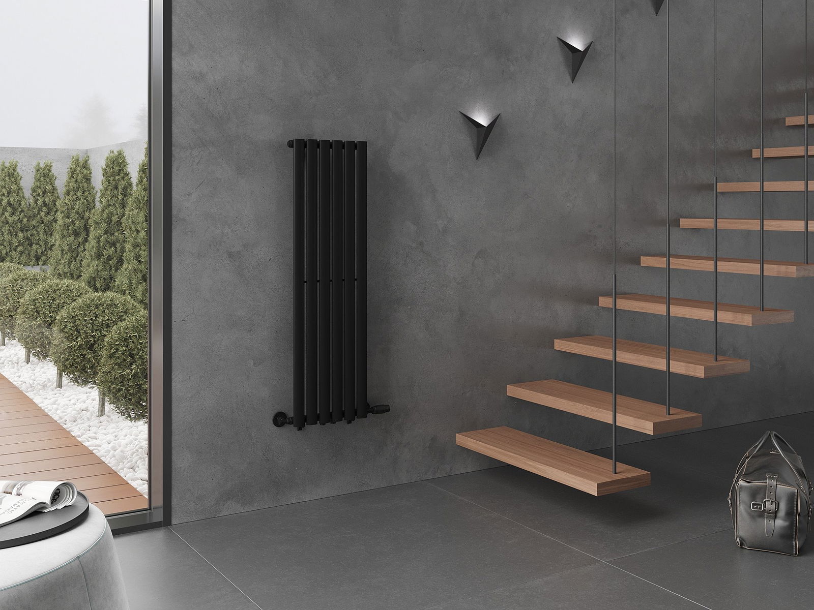 W komplecie: zawieszenia, zestaw montażowy, korki zaślepiające oraz odpowietrznik