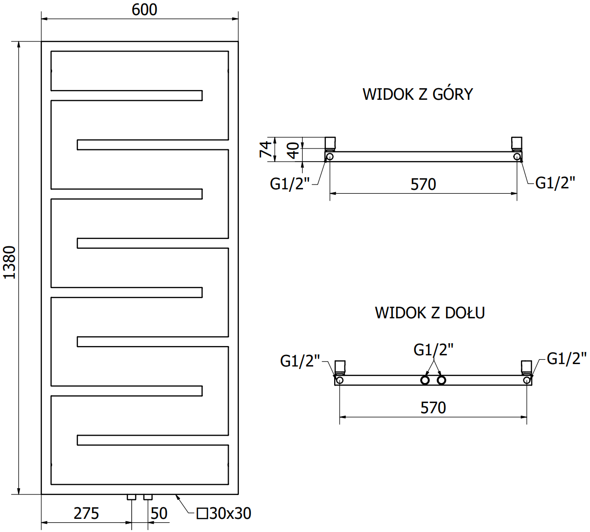 - 4xG ½″ od góry oraz dołu z prawej lub lewej strony