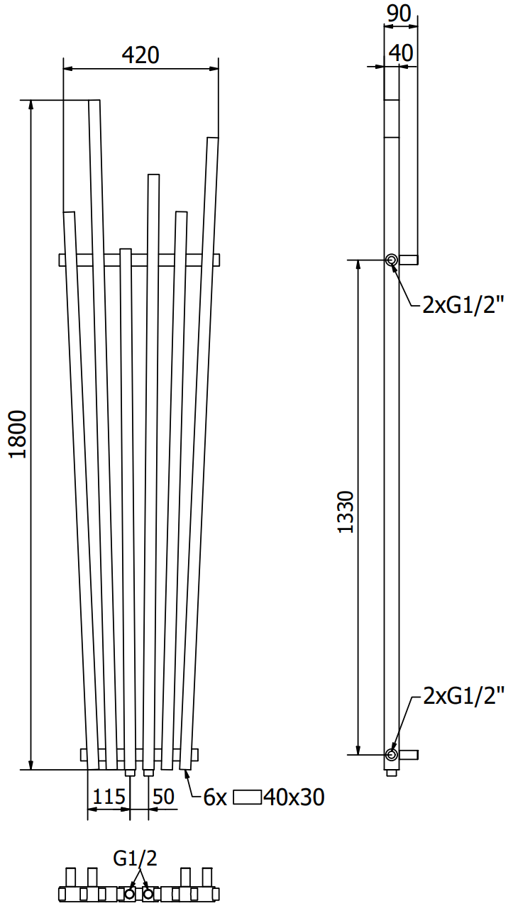 - 4xG ½″ od góry oraz dołu z prawej lub lewej strony
