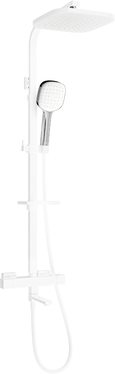 Mexen CQ33 zestaw wannowo-prysznicowy z deszczownicą i baterią termostatyczną, biały/chrom - 779103395-21