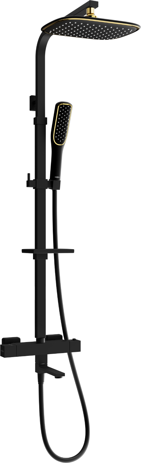 Mexen CQ49 zestaw wannowo-prysznicowy z deszczownicą i baterią termostatyczną, czarny/złoty - 779104995-75