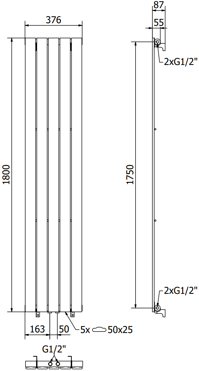 - 4xG ½″ od góry oraz dołu z prawej lub lewej strony