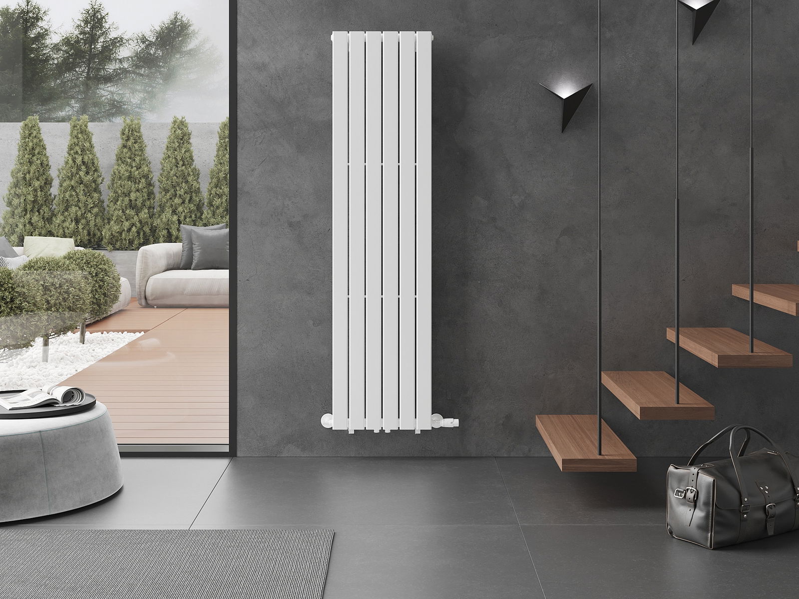 W komplecie: zawieszenia, zestaw montażowy, korki zaślepiające oraz odpowietrznik