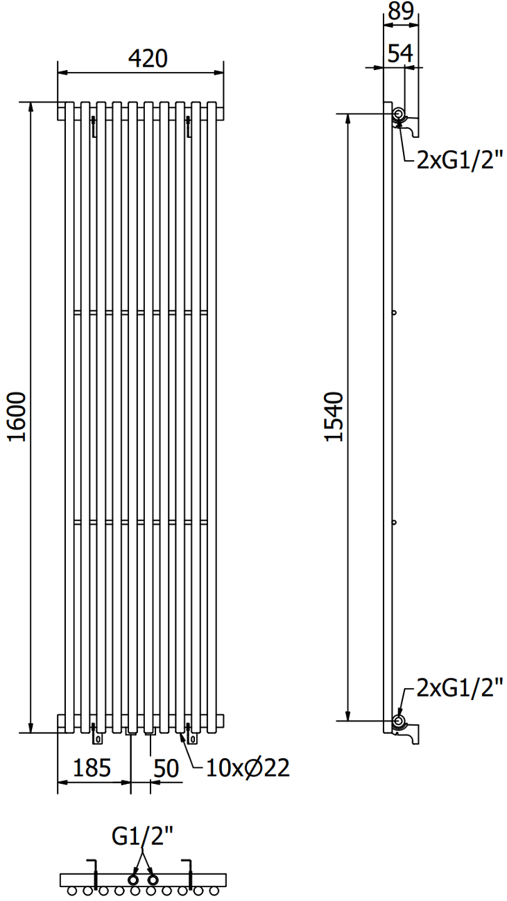 - 4xG ½″ od góry oraz dołu z prawej lub lewej strony