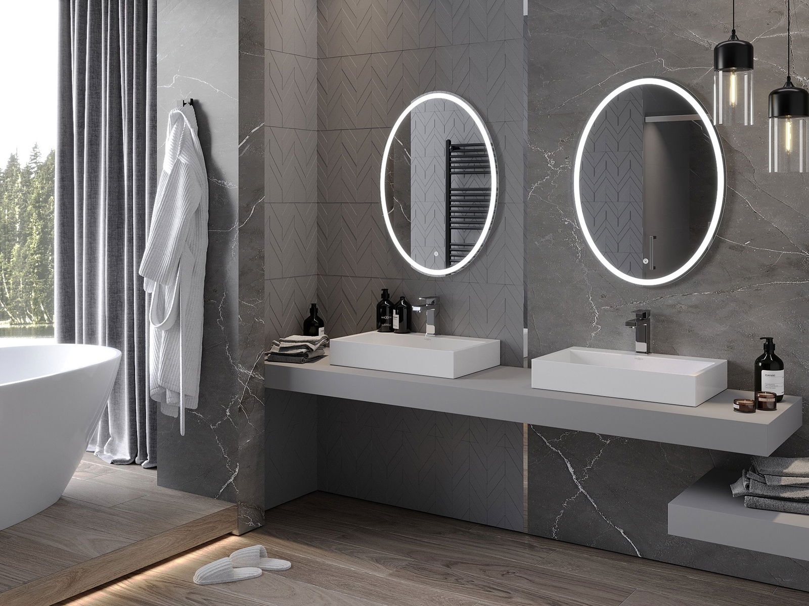 Podświetlenie LED przy lustrze to praktyczny element, który ułatwia codzienną pielęgnację, dzięki możliwości idealnego doświetlenia twarzy. Podświetlenie nadaje łazience nowoczesnego wykończenia, podkreślając jej elegancki wystrój.