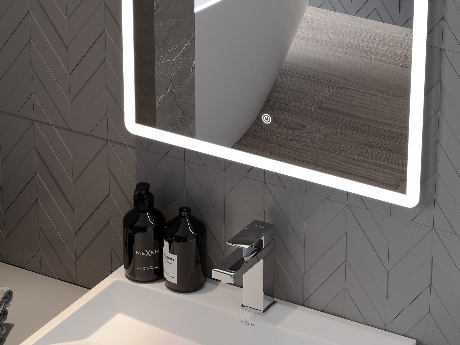 Oświetlenie lustra można w prosty i wygodny sposób uruchomić za pomocą dotknięcia włącznika na tafli lustra. Pozwala to na szybkie doświetlenie, bez konieczności sięgania po położony dalej tradycyjny włącznik oświetlenia.