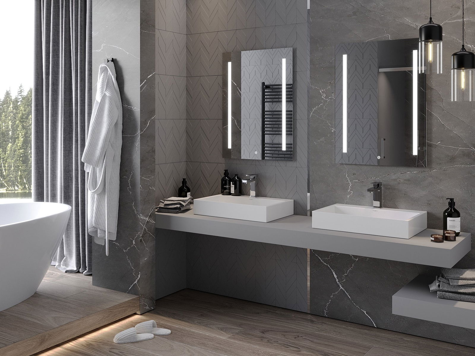 Podświetlenie LED przy lustrze to praktyczny element, który ułatwia codzienną pielęgnację, dzięki możliwości idealnego doświetlenia twarzy. Podświetlenie nadaje łazience nowoczesnego wykończenia, podkreślając jej elegancki wystrój.