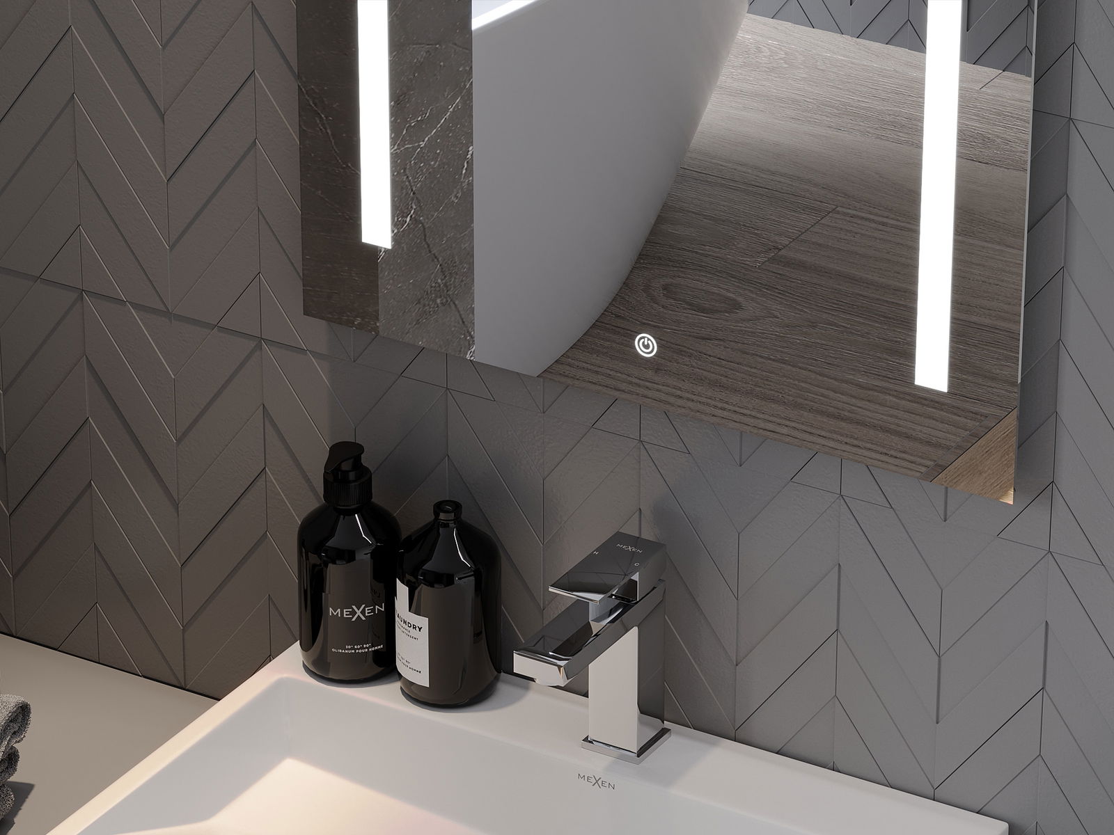 Oświetlenie lustra można w prosty i wygodny sposób uruchomić za pomocą dotknięcia włącznika na tafli lustra. Pozwala to na szybkie doświetlenie, bez konieczności sięgania po położony dalej tradycyjny włącznik oświetlenia.
