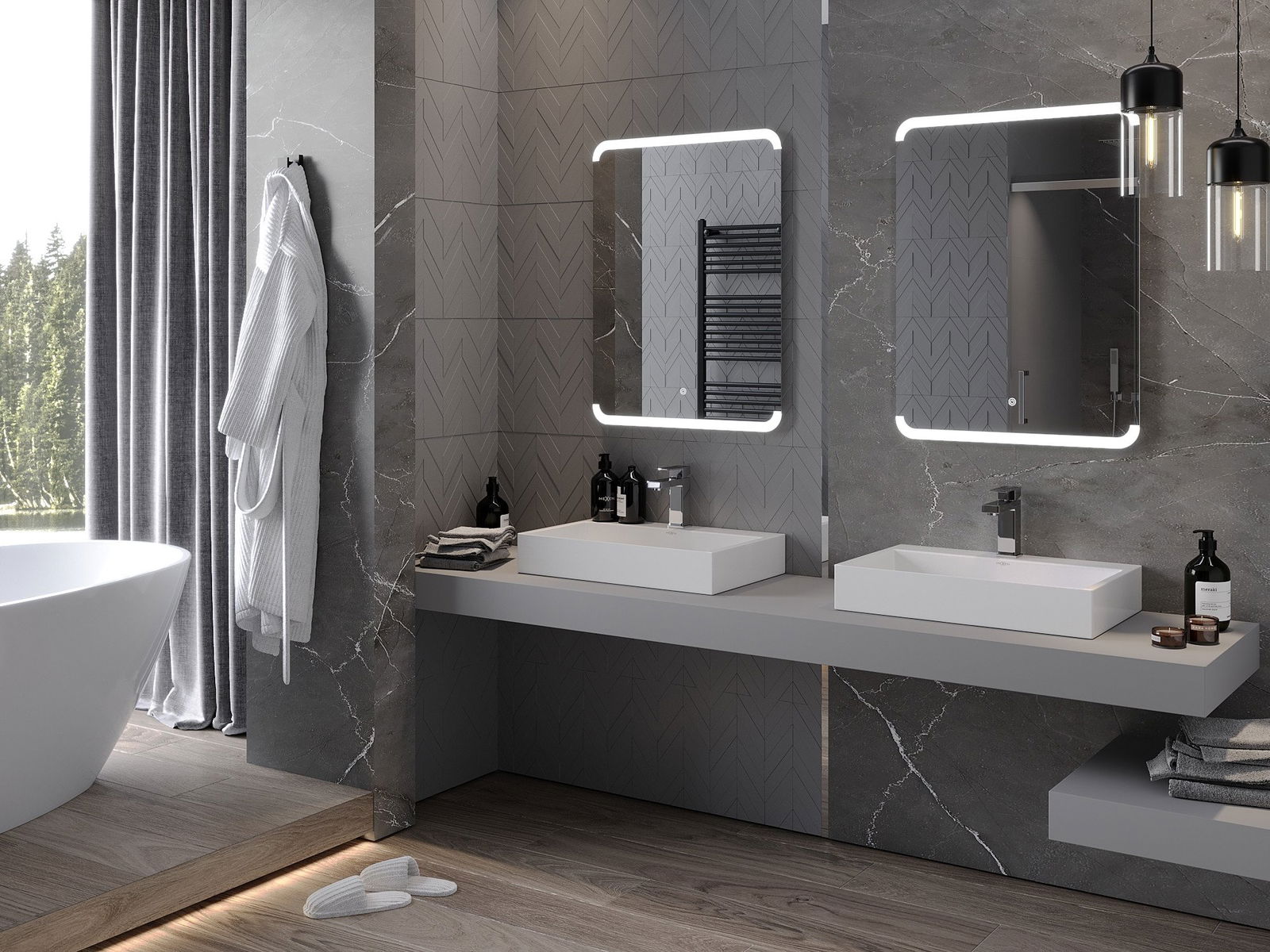 Oświetlenie lustra można w prosty i wygodny sposób uruchomić za pomocą dotknięcia włącznika na tafli lustra. Pozwala to na szybkie doświetlenie, bez konieczności sięgania po położony dalej tradycyjny włącznik oświetlenia.