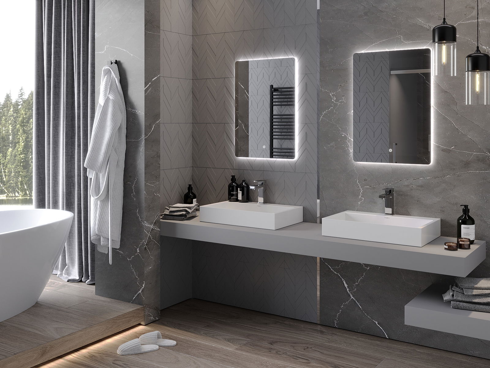 Podświetlenie LED przy lustrze to praktyczny element, który ułatwia codzienną pielęgnację, dzięki możliwości idealnego doświetlenia twarzy. Podświetlenie nadaje łazience nowoczesnego wykończenia, podkreślając jej elegancki wystrój.