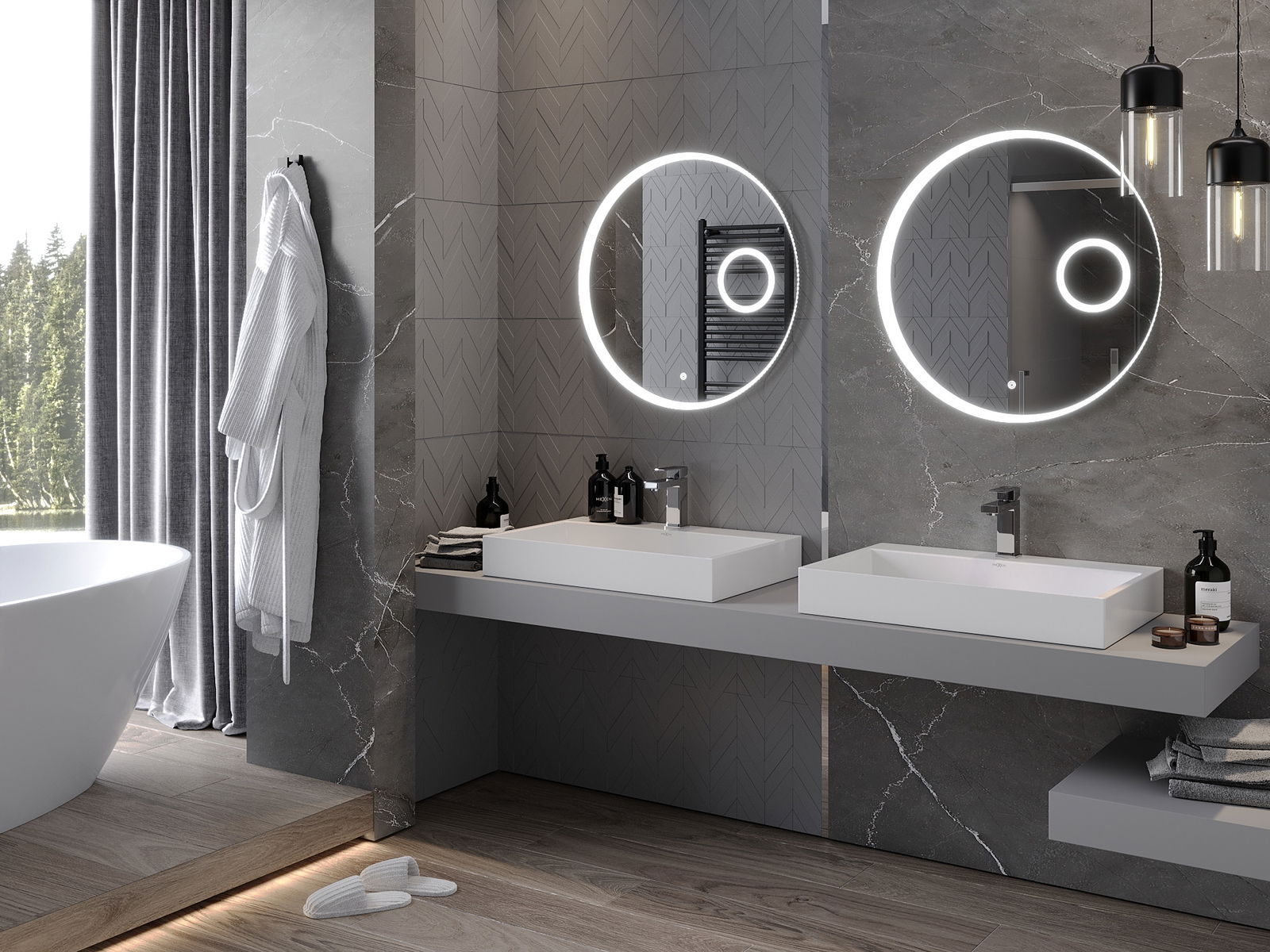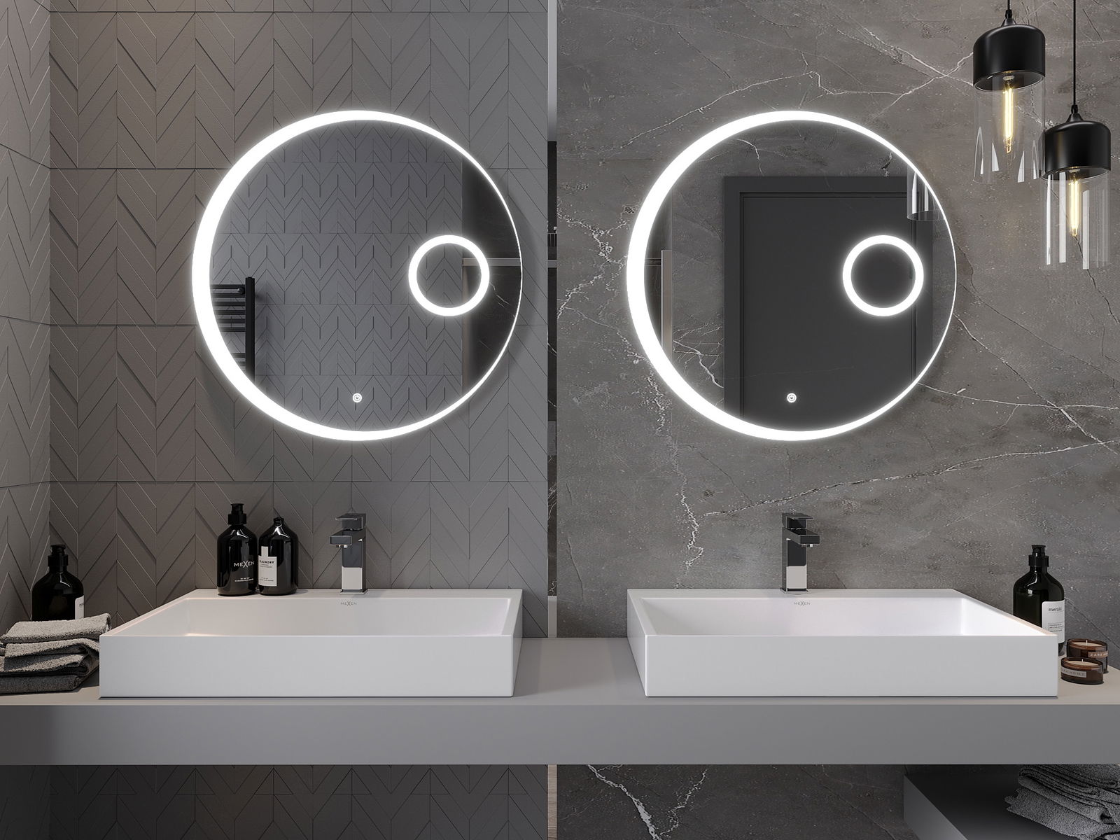 Mexen Ella lustro łazienkowe podświetlane z lusterkiem kosmetycznym, okrągłe 70 cm, LED 6000K, antypara - 9811-070-070-611-00