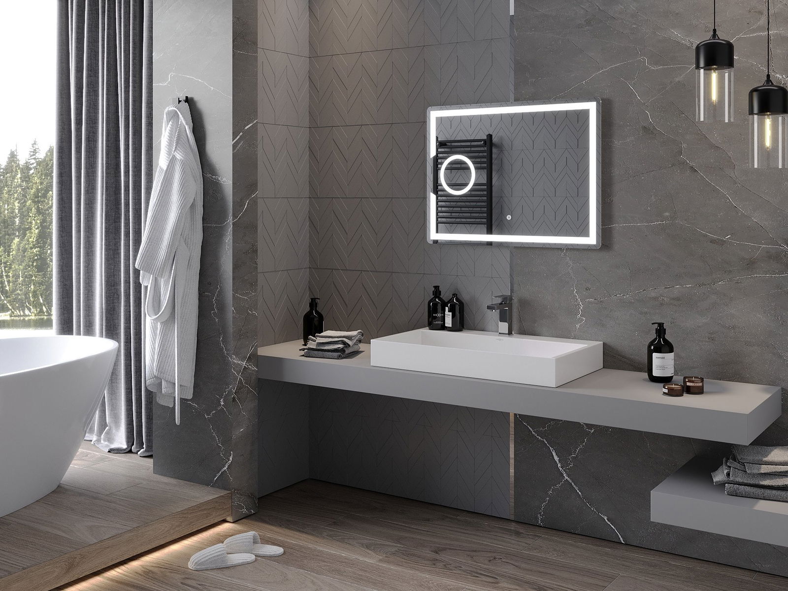 Lustro zostało wyposażone w oświetlenie LED o barwie zimnej – 6000K. Zapewnia intensywne i wyraźne oświetlenie, które pozwala na zauważenie nawet najdrobniejszych detali. Doskonale wspiera codzienne zabiegi pielęgnacyjne twarzy.