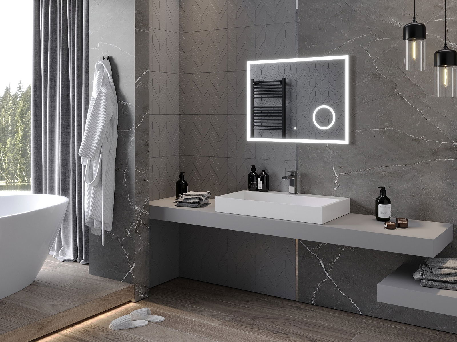 Lustro zostało wyposażone w oświetlenie LED o barwie zimnej – 6000K. Zapewnia intensywne i wyraźne oświetlenie, które pozwala na zauważenie nawet najdrobniejszych detali. Doskonale wspiera codzienne zabiegi pielęgnacyjne twarzy.