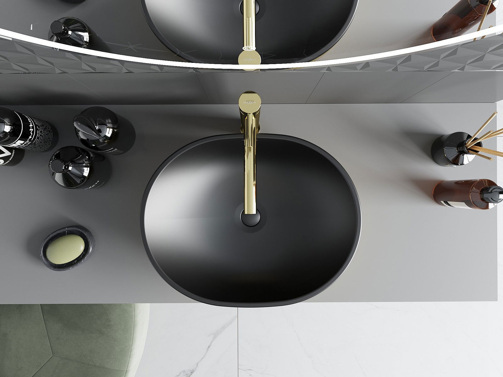 • Mexen Viki umywalka nablatowa 48 x 35 cm, czarna mat/złota - 21054876