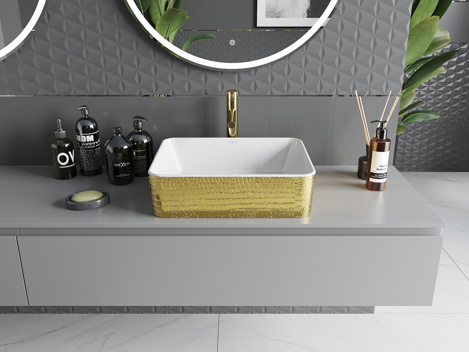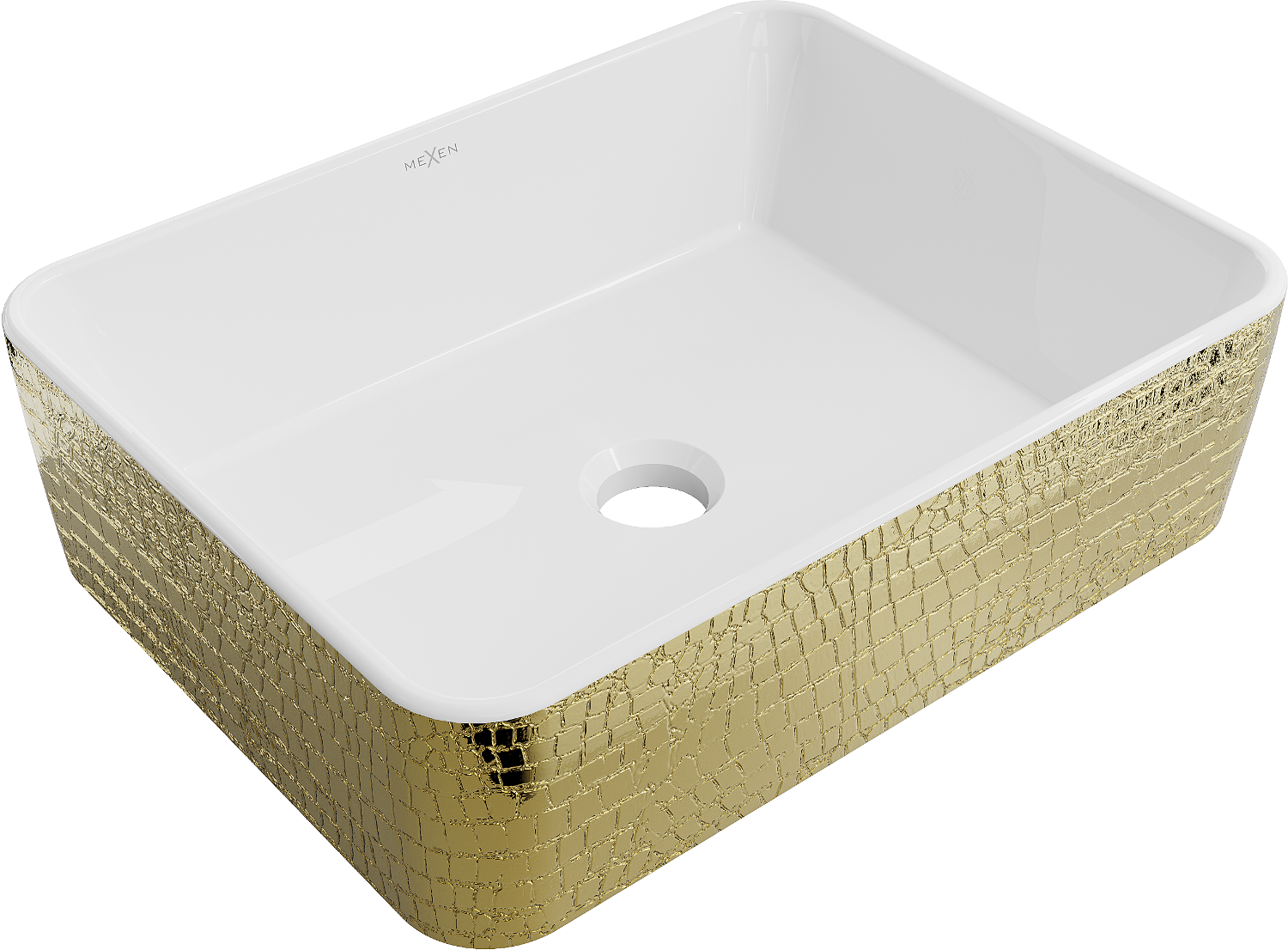 • Mexen Catia umywalka nablatowa 48 x 38 cm, biała/złota wzór łuski - 21314808