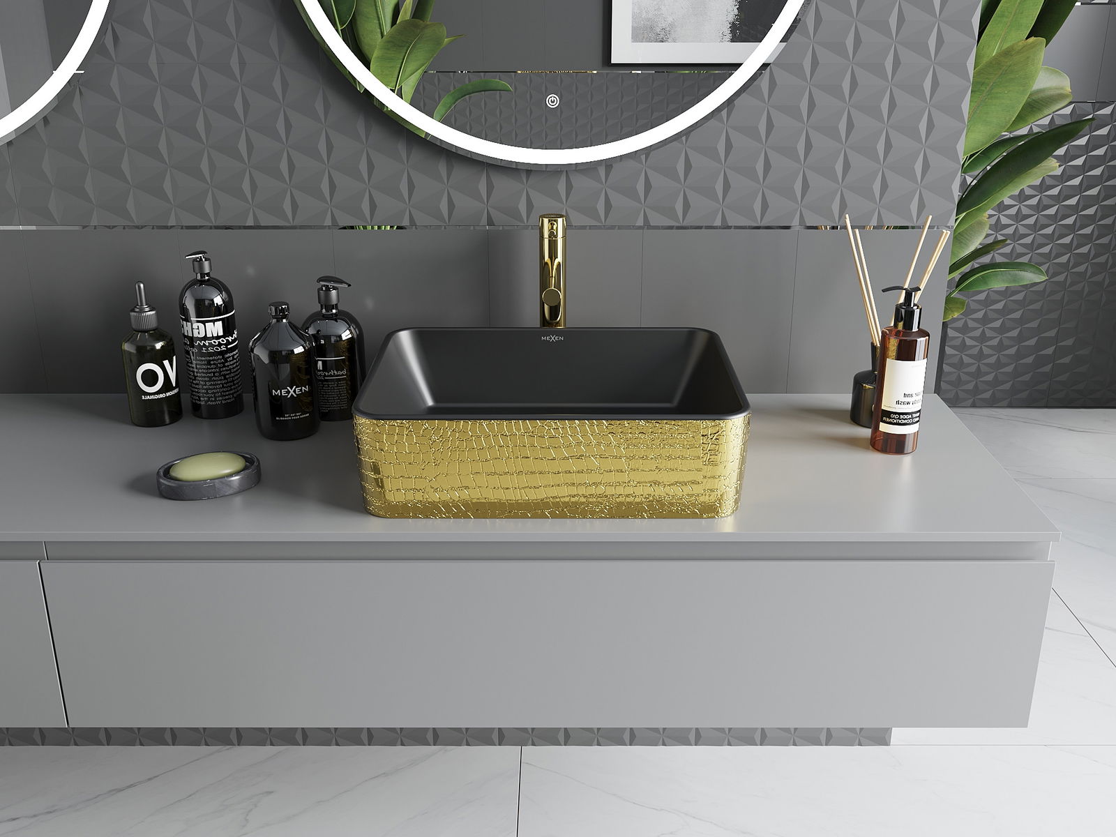 Kolor: Czarny mat/Złoty wzór łuski