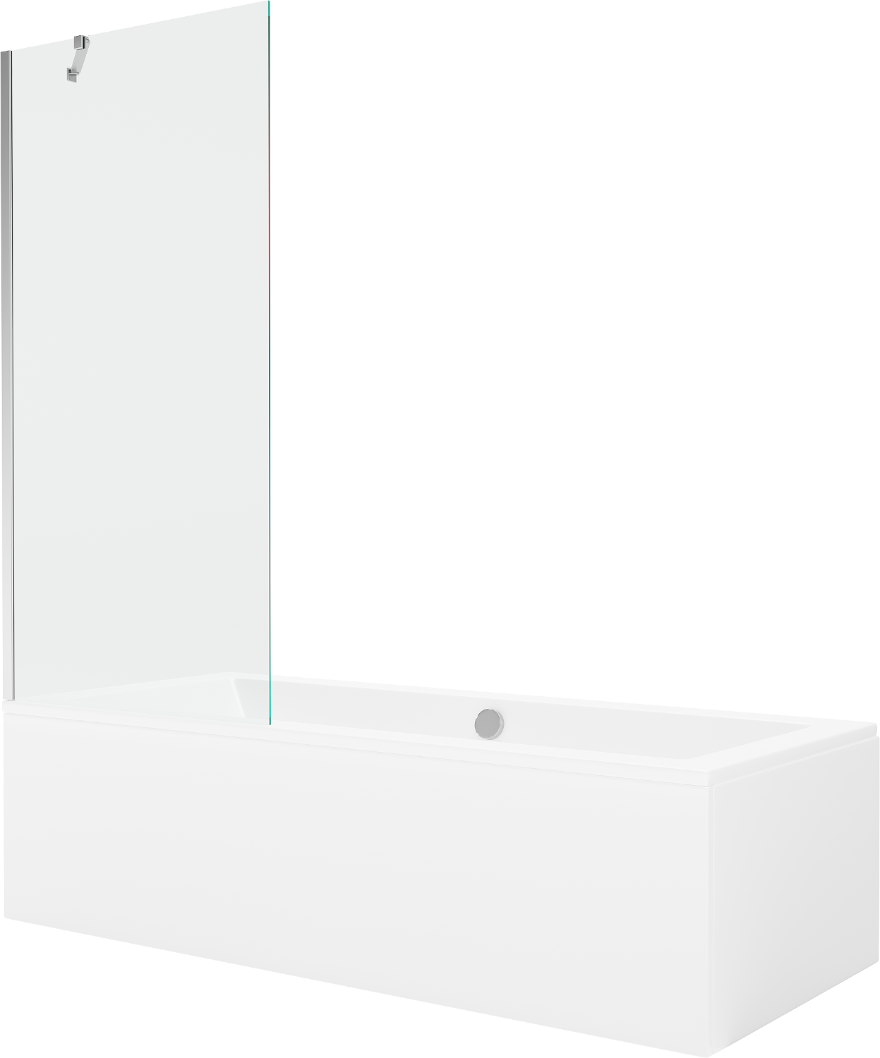 Mexen Cube wanna prostokątna 170 x 80 cm z obudową i parawanem 1-skrzydłowym 80 cm, transparent, chrom - 550517080X9508000001