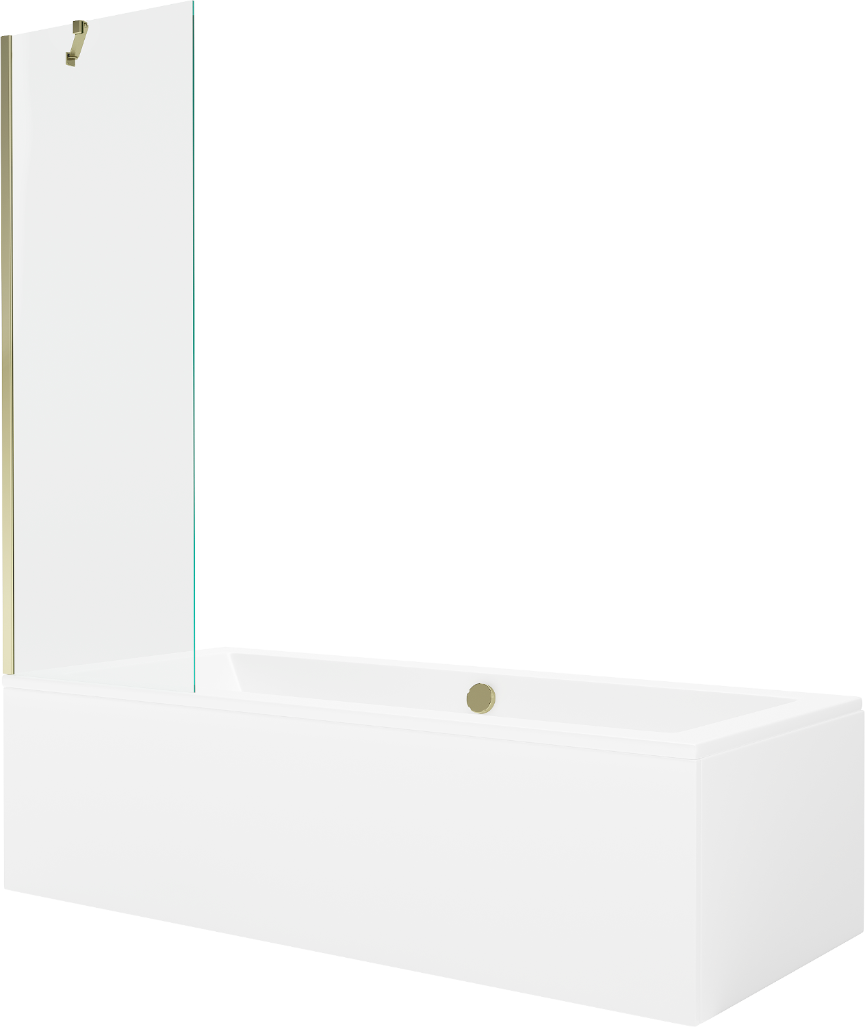 Mexen Cube wanna prostokątna 180 x 80 cm z obudową i parawanem 1-skrzydłowym 60 cm, transparent, złoty - 550518080X9506000050