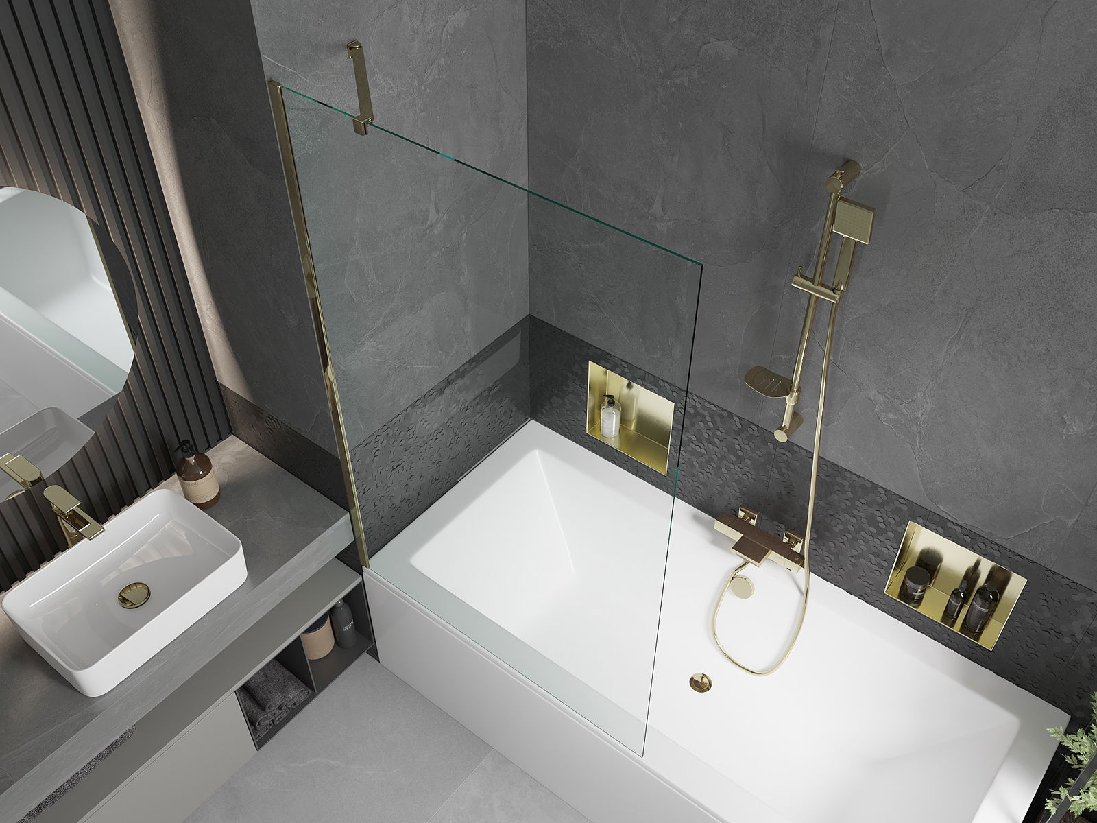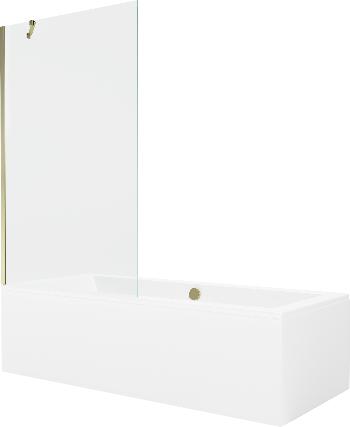 Mexen Cube wanna prostokątna 180 x 80 cm z obudową i parawanem 1-skrzydłowym 100 cm, transparent, złoty - 550518080X9510000050