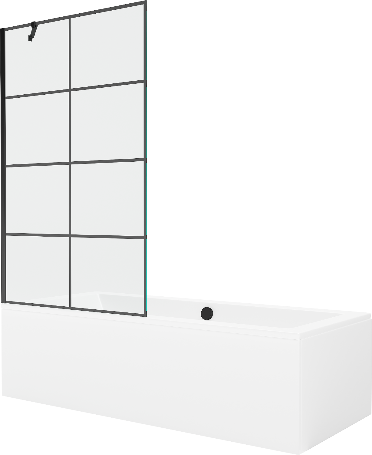 Mexen Cube wanna prostokątna 180 x 80 cm z obudową i parawanem 1-skrzydłowym 100 cm, czarny wzór - 550518080X9510007077