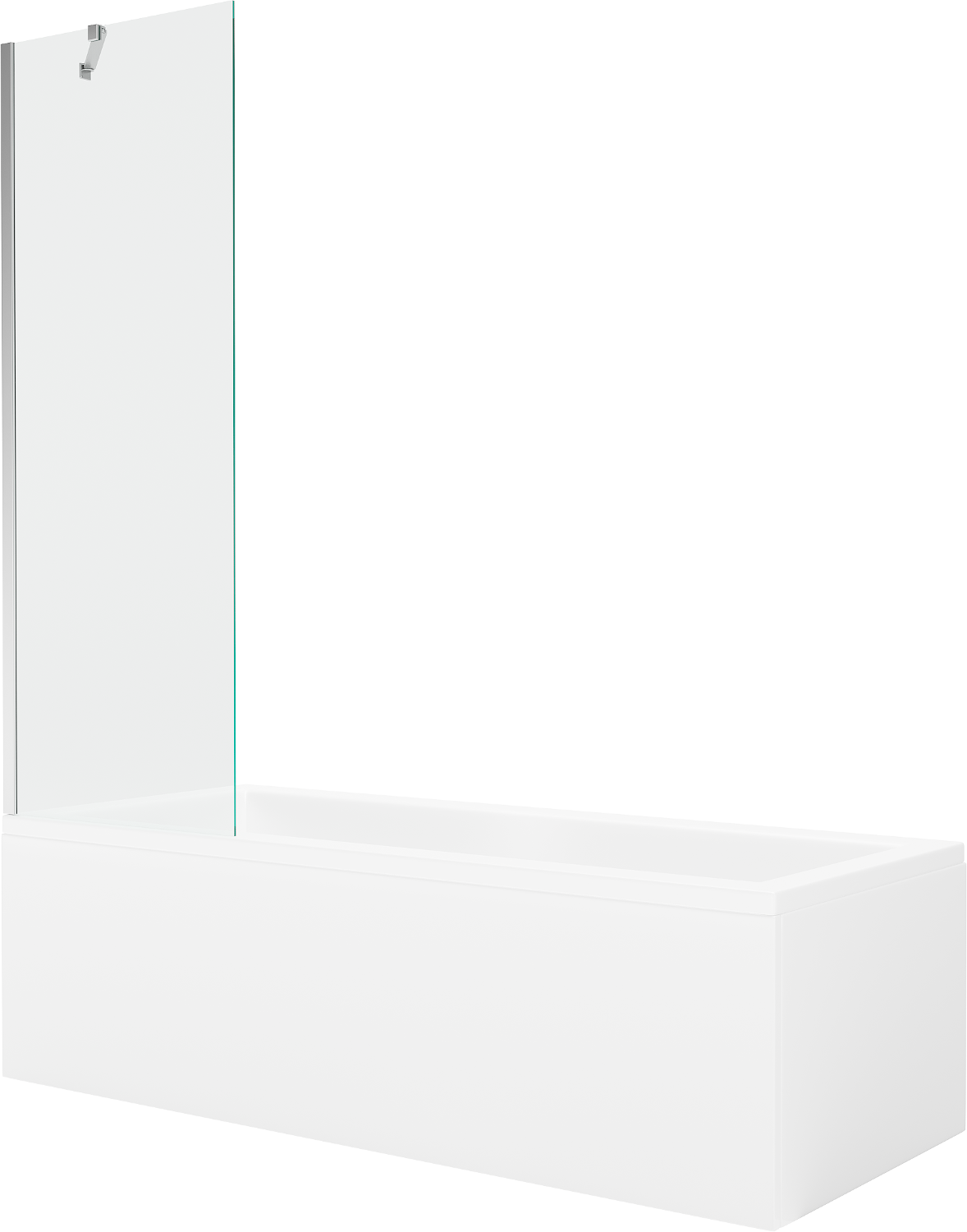 Mexen Cubik wanna prostokątna 150 x 70 cm z obudową i parawanem 1-skrzydłowym 60 cm, transparent, chrom - 550315070X9506000001